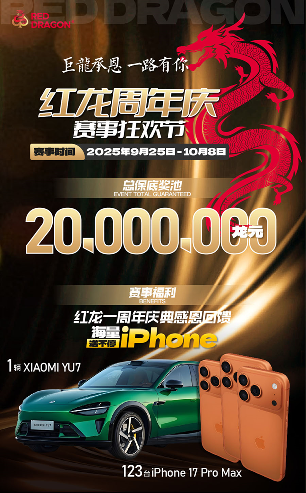 当圣诞的钟声遇见新年的焰火,红龙扑克为你开启年度最盛大的赛事狂欢。 从 12 月 20 日至 1 月 3 日,全平台赛事全面升级,以更高保底、更强福利、更密集赛程,为所有玩家献上一场真正的 年终巅峰盛宴。 双旦焕新赛事节 12月20日 — 1月3日 50,000,000+ 保底奖池 重点赛事推荐 🎅 双旦青龙开幕赛