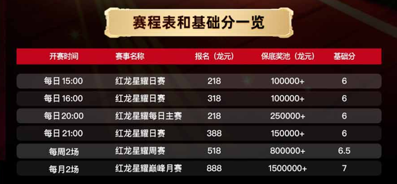 - 💰 总赛事保底 25,000,000+ 龙元,争夺排名同时享高保底赛事